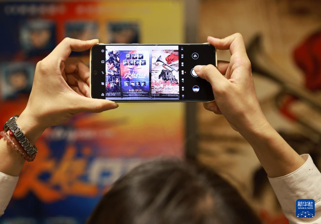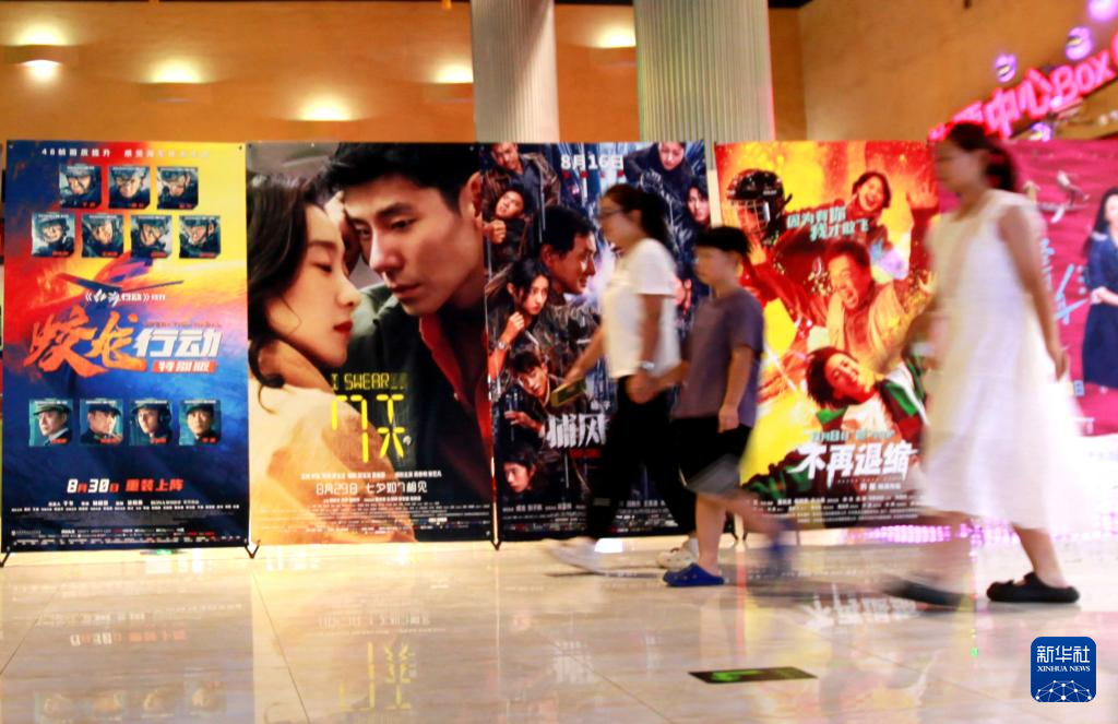 8月31日,在湖北省武漢市江岸區一家影城,觀眾拍攝近期上映的電影海報。