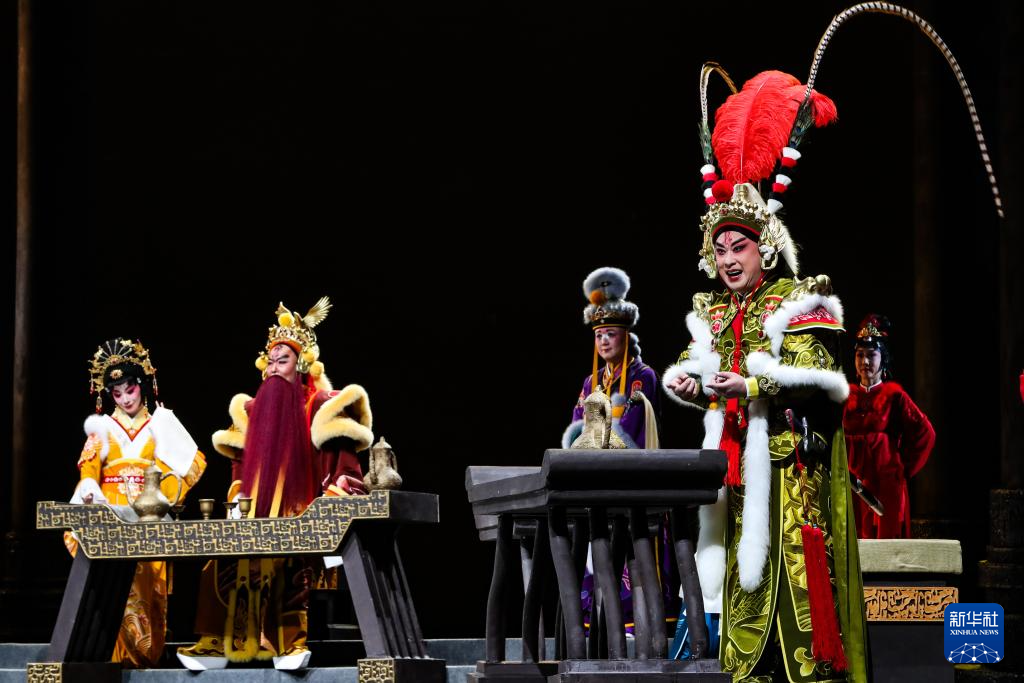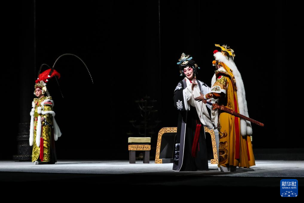 9月5日晚,演員在蘭州音樂廳表演新編歷史京劇《涼州辭》。