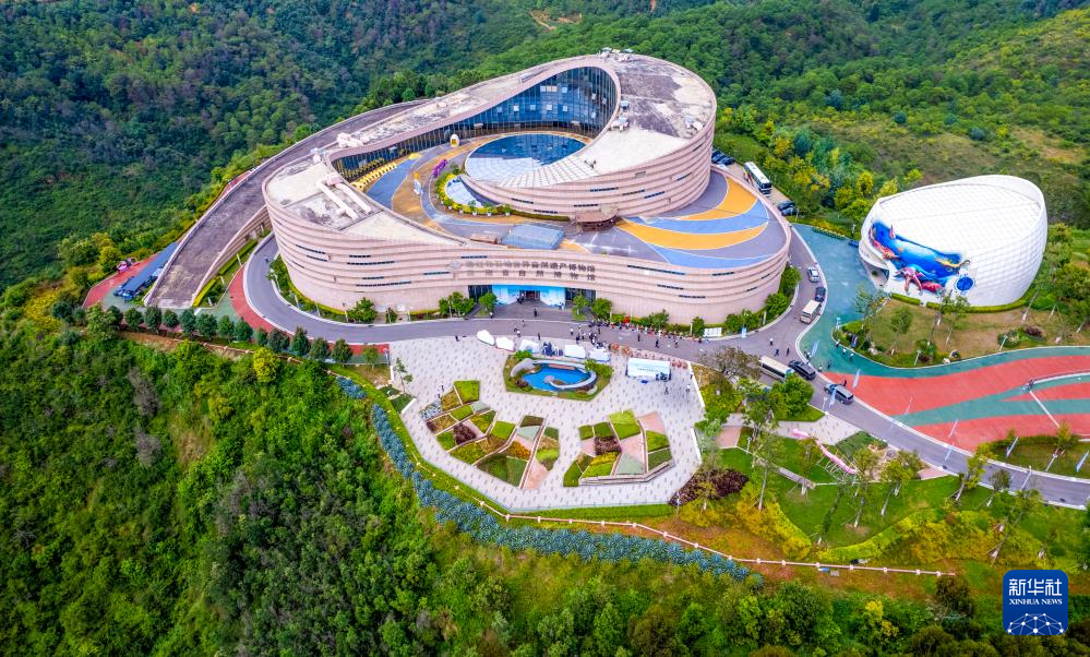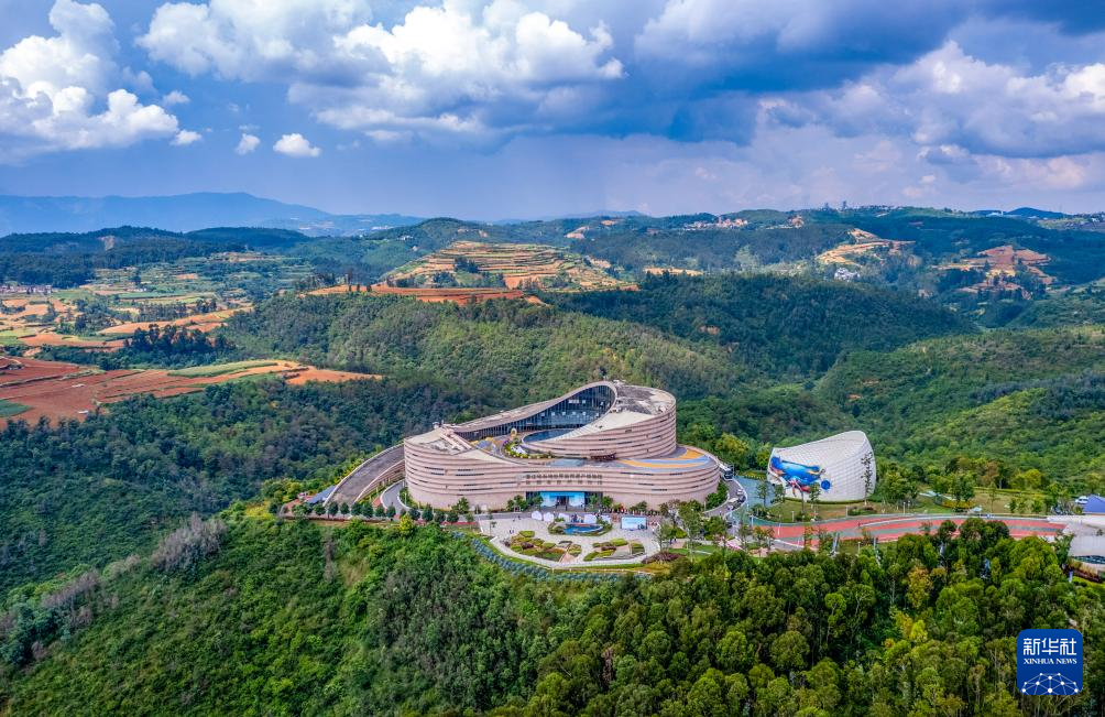 這是9月7日拍攝的澄江化石地世界自然遺產博物館外景(無人機照片)。