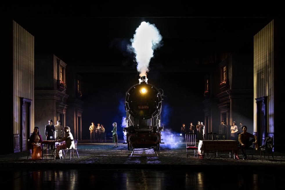 不同于老版的寫實內景,這一版演出舞臺設計以外景為主,一列老式蒸汽火車隨劇情推進在臺上行進、旋轉。何冰說,火車這一意象,一方面以視覺壓迫感象征戰爭在人們心中投下的深深恐懼,一方面也蘊含“它也可以帶我們去遠方”的溫暖希望。(記者白瀛)