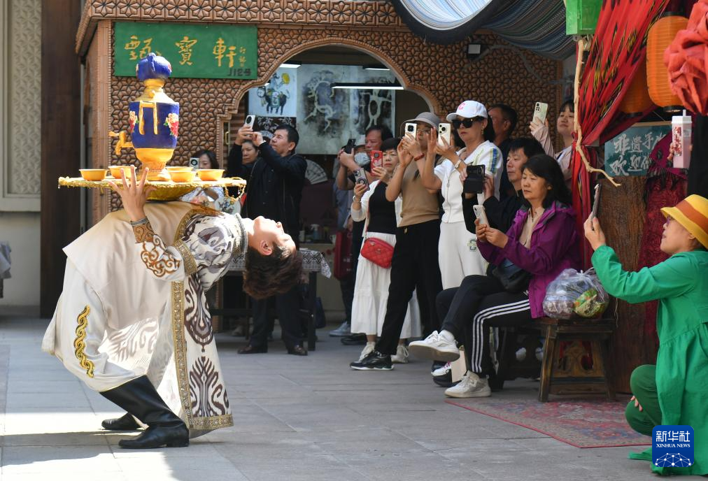 銅盤銅壺穩穩地頂在頭上,腳下舞步輕快如風,在新疆庫車龜茲小巷內,一群舞者正跳著薩瑪瓦爾舞——一種源自千年古龜茲的古老舞蹈。他們的每一個轉身都仿佛帶著歷史的回音,引得圍觀游客陣陣喝彩。舞至酣時,舞者會邀游客共舞,笑聲與樂聲融成一片。
