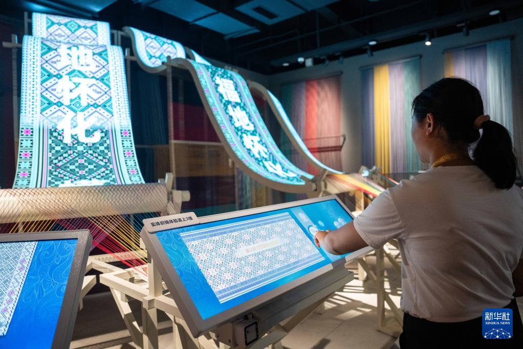 9月16日,在湖南省懷化市五溪非遺園,游客在體驗數字化織錦。