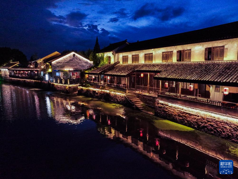 這是9月19日拍攝的夜色中的沈蕩鎮老街(無人機照片)。