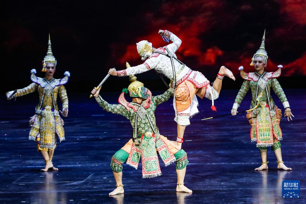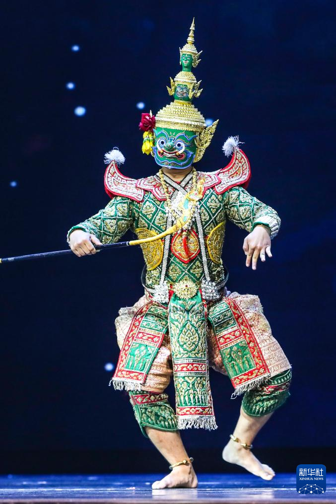 9月22日晚,在“相約敦煌”國際文化交流演出活動現場,來自泰國的演員表演孔劇《拉瑪堅》選段。