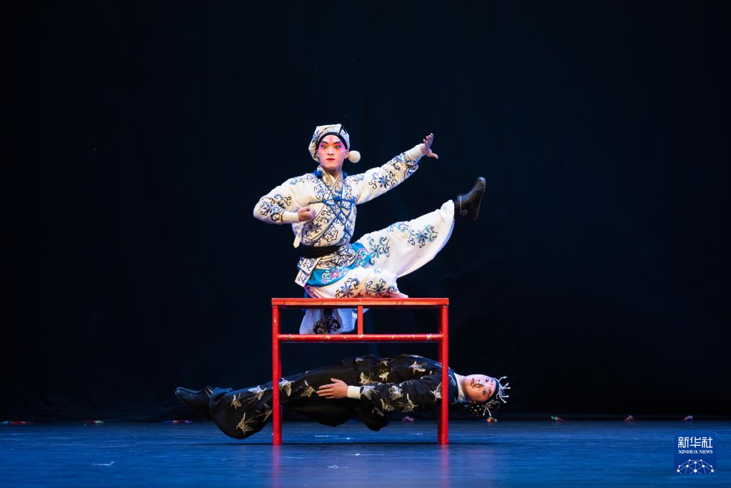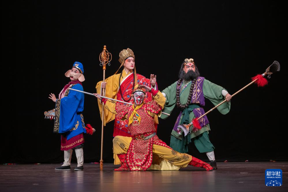 9月25日,在剛果(金)首都金沙薩,演員表演婺劇《三岔口》。
