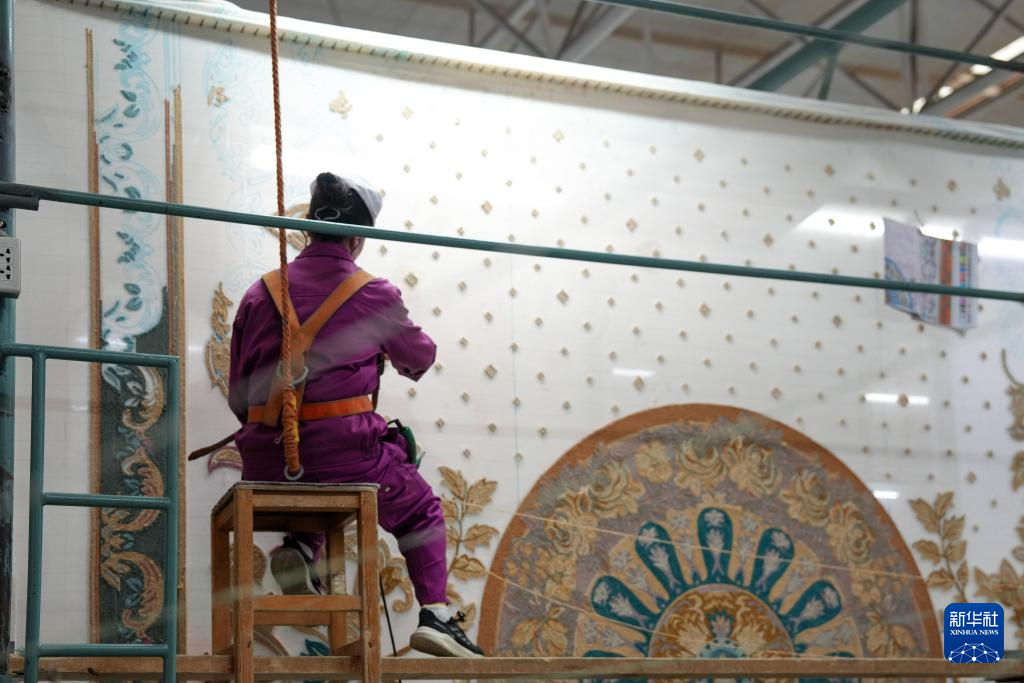 9月27日,在西寧市圣源地毯集團有限公司生產車間,一名操作工在制作藏毯。
