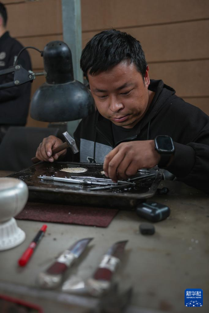2021年,以東西部協作為契機,江蘇省南京市棲霞區對口支援湟中區,謀劃以銀銅器加工為主的鄉村振興產業,打造魯沙爾鎮陽坡村民族手工藝加工基地。基地采取“股份合作社+基地+農戶”經營模式,全村400多戶村民中,近40%的村民靠這門手藝增收致富。
