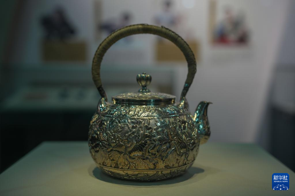 9月28日在青海省西寧市湟中區魯沙爾鎮陽坡村民族手工藝加工基地拍攝的銀鏨刻擺件。