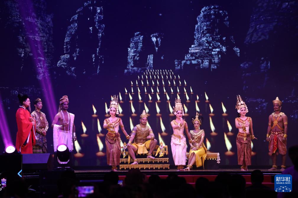 9月28日,柬埔寨表演團體在金邊舉行的中柬中秋聯誼晚會上演出。