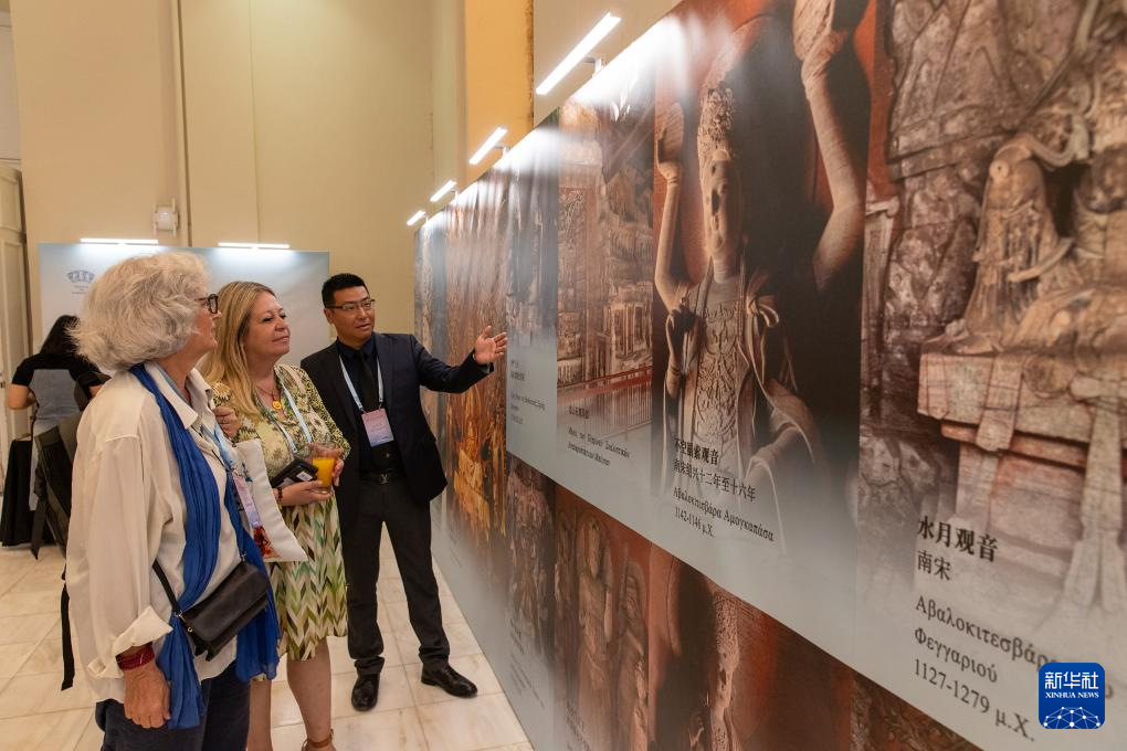 9月25日,在希臘雅典,嘉賓在“古城新韻——重慶對話雅典”城市文明對話活動上觀展。新華社發(馬里奧斯·羅洛斯攝)