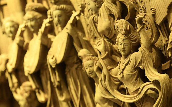 東陽木雕因發源于浙江東陽而得名,由唐至今已有千余年歷史,是中國民間雕刻藝術的優秀代表。東陽木雕以平面浮雕為主,散點透視構圖,層次豐富,色澤清淡,具有自己鮮明的特色。