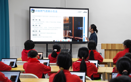 綠色公益、低碳賦能。港華智慧能源與東亞銀行充分發揮綠色能源優勢,通過太陽能系統為“綠色螢火蟲樂園”的電教設備供電,減少傳統能源消耗,降低碳排放。在綠色數字化教室里,岳池港華員工與喬家小學老師共同開展了燃氣安全知識課堂,通過燃氣安全教育視頻及專業的知識講授,為學生們撐起安全呵護傘。