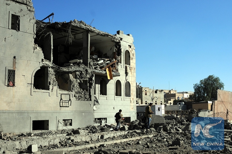 People inspect the site of airstrikes in Sanaa, , Dec. 13, 2017. (Xinhua/Mohammed Mohammed)