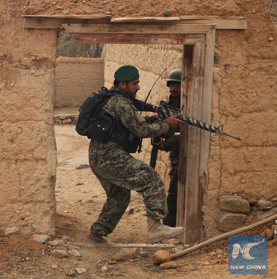 Afghan army soldiers take part in a military operation against Islamic State in Khogyani district of Nangarhar province, , Dec. 14, 2017. (Xinhua/Rahman Safi)