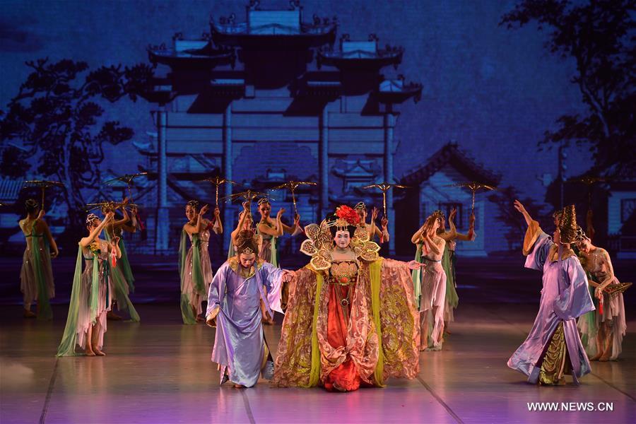 Dancers perform during a Chinese drama dance show named "To Meet the Grand Canal" in Cairo, on Nov. 28, 2017. (Xinhua/Ahmed Gomaa)