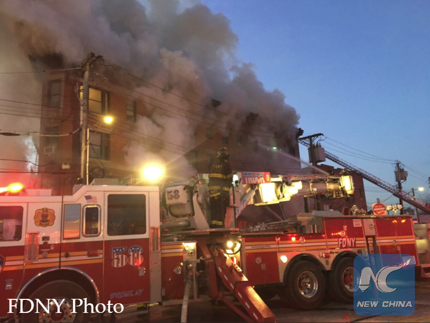 NEW YORK, Jan. 2 (Xinhua) -- At least 23 people were injured in a fire that broke out in a building in the Bronx, New York City, on Tuesday, just days after a deadly fire killed 12 people in the same borough.