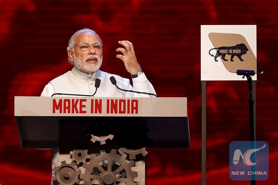 India's Prime Minister speaks during the inauguration ceremony of the 'Make In India' week in Mumbai, India. (Reuters Photo)