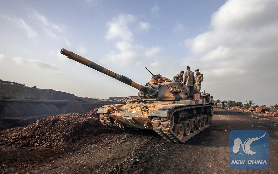 ?A Turkish armored vehicle is seen in Afrin, , on Jan. 22, 2018. (Xinhua Photo)