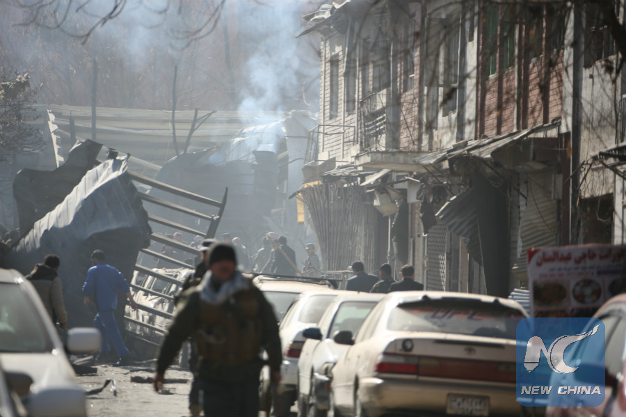 Photo taken on Jan. 27, 2018 show the explosion site in Kabul, capital city of Afghanistan. (Xinhua/Rahmat Alizadah)