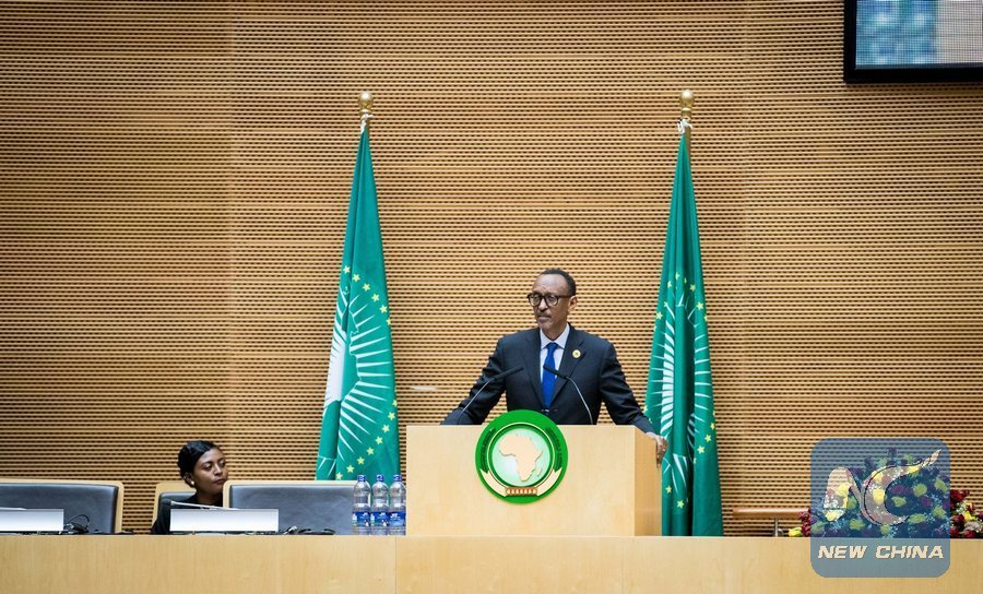 ADDIS ABABA, Jan. 29 (Xinhua) -- Rwandan President Paul Kagame on Sunday took over chairmanship of the African Union (AU) during the heads of state and government summit of the AU.