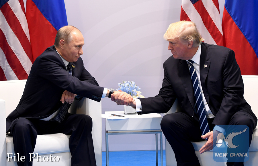 U.S. President Donald Trump shakes hands with Russia's President Vladimir Putin during their bilateral meeting at the G20 summit in Hamburg, Germany July 7, 2017.