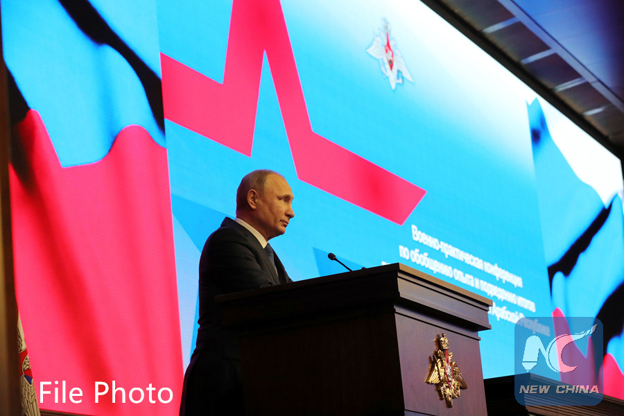 n President Vladimir speaks during a conference on the n operation at the Defence Ministry control centre in Moscow, Russia January 30, 2018. (KREMLIN PHOTO)