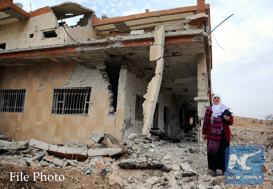 A woman stands in front of her destroyed house in the town of Mughor al-Mir, one of the three towns as the last strongholds of rebels, largely those affiliated with the -linked Nusra Front, in the Western Ghouta countryside of Damascus, capital of , on Dec. 29, 2017. (Xinhua/Ammar Safarjalani)