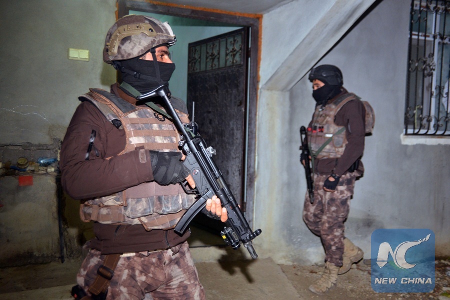 Security forces carry out a raid on IS-linked suspects planning New Year attacks in Adana, Turkey, on Dec. 26, 2017. (Xinhua)
