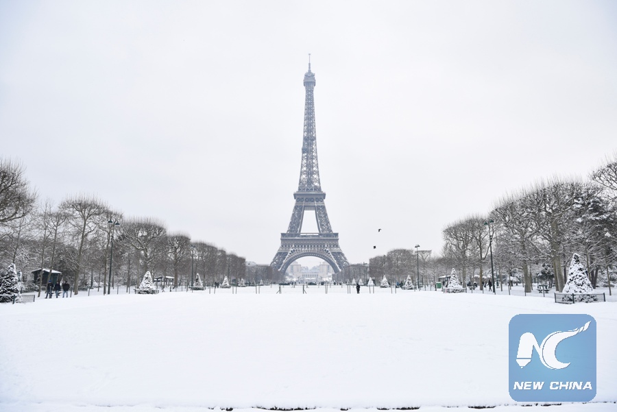 Photo taken on Feb. 7, 2018 shows the Eiffel Tower in Paris, . (Xinhua/Chen Yichen)