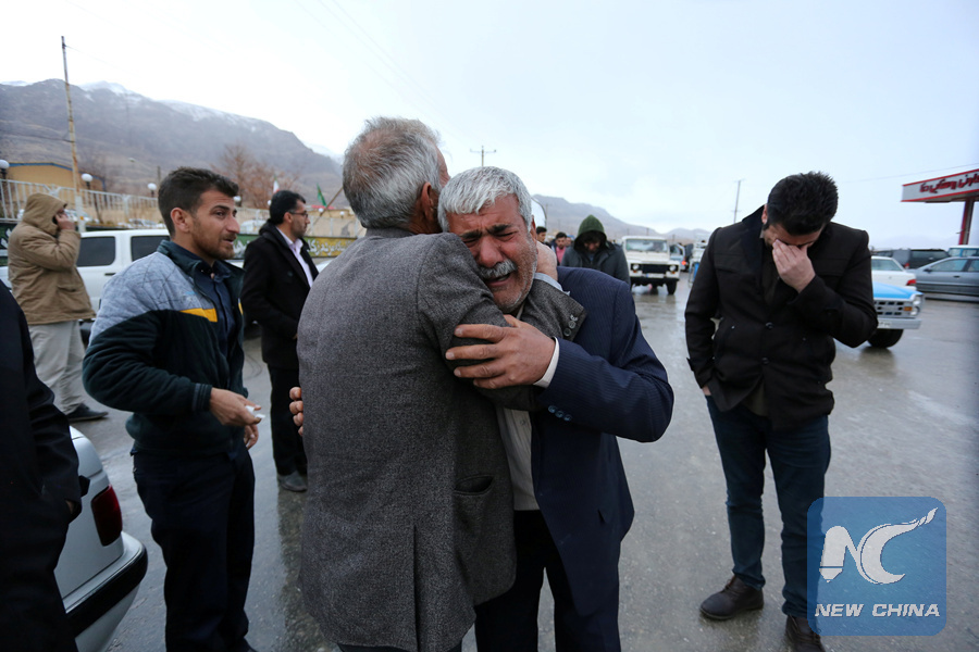 Relatives of passengers who were believed to have been killed in a plane crash react near the town of Semirom, , February 18, 2017. (TASNIM PHOTO)