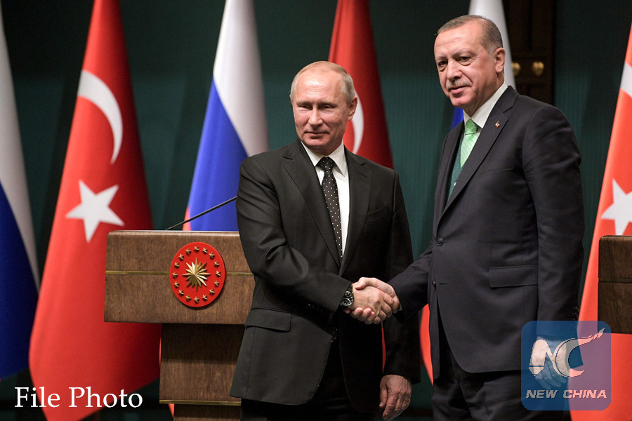MOSCOW, Feb. 19 (Xinhua) -- Russian President Vladimir Putin and his Turkish counterpart Recep Tayyip Erdogan agreed to strengthen cooperation under the Astana agreements to promote the n peace process, the Kremlin said Monday.