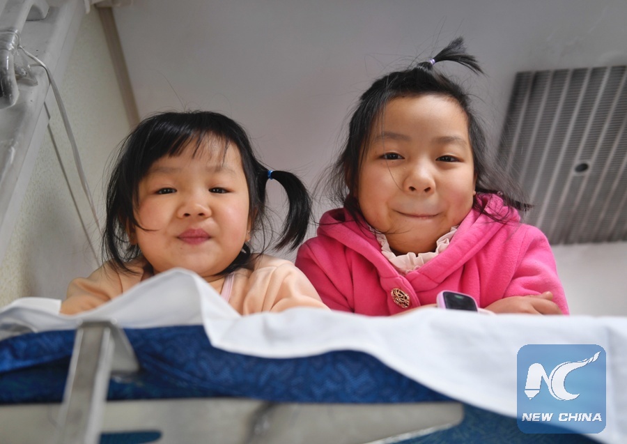 File Photo: Two children play on a train from Guangzhou to Dazhou, Feb. 1, 2018. (Xinhua/Liu Kun)