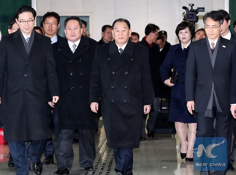 The DPRK delegation, led by Kim Yong Chol, Vice Chairman of the Central Committee of the ruling Workers' Party of Korea, crossed the inter-Korean border via land route and arrived in the transit office in the west region at about 9:53 a.m. local time (0053 GMT), local TV footage showed.