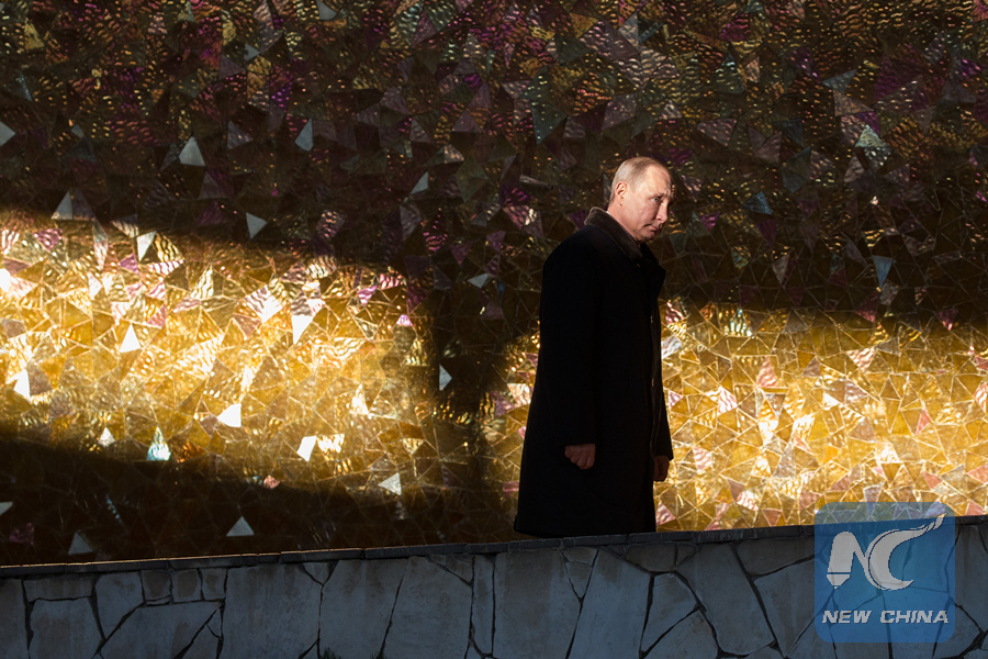 Russian President Vladimir Putin leaves the Battle of Stalingrad State Historical and Memorial Museum-Reserve after laying a wreath at the Eternal Flame in Volgograd, Russia, on Feb. 2, 2018. (Xinhua/Bai Xueqi)
