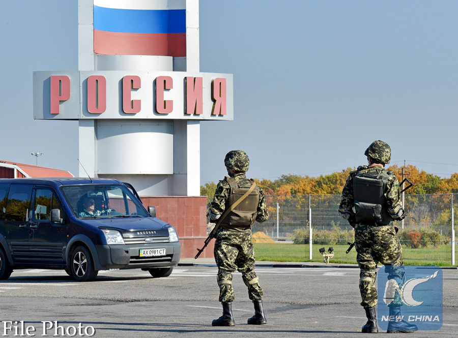 A file picture taken on October 15, 2014 shows servicemen of Ukrainian border standing guard at the Goptivka border crossing on the Urkainian-n border, north of Kharkiv, eastern Ukraine. (AFP Photo)