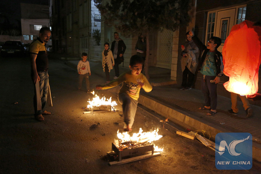 TEHRAN, March 16 (Xinhua) -- Spring cleaning, shopping for special food and clothes, holding fire festival and special street drama is how the Iranians celebrate Nowruz and the start of spring.