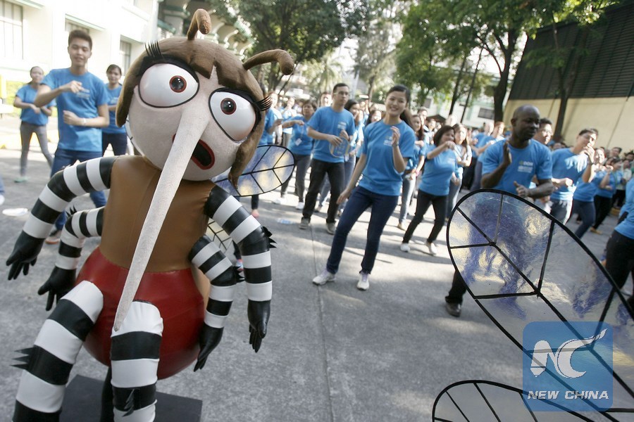 People perform the "mosquito dance" to mark the World Health Day at the Philippine Department of Health (DOH) in Manila, the Philippines, April 7, 2014. (Xinhua/Rouelle Umali)