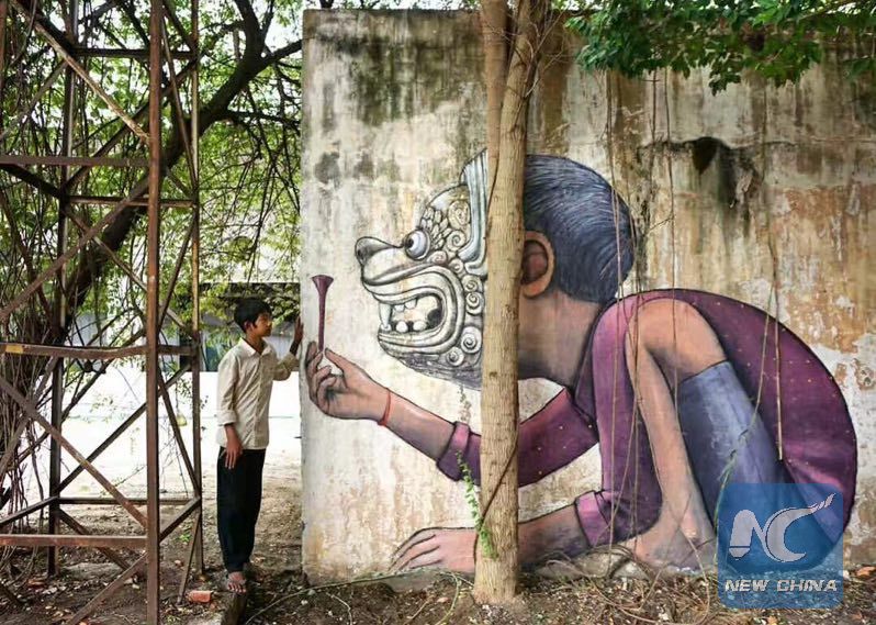 Seth became popular in Shanghai in the winter of 2014, when he worked with Chinese artist Shi Zheng on the painting "Sleeping Chinese Beauties," inspired by a classic Tang Dynasty (618-907) poem. Photos of the painting, located on the wall of a partially demolished house in Shanghai, spread quickly via Chinese social media app WeChat.
