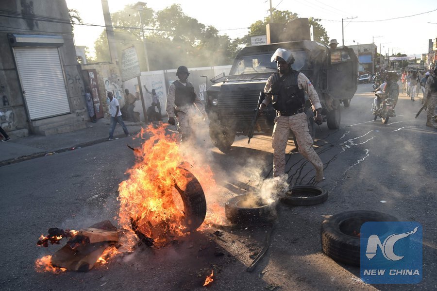 File Photo: Haitians break up a barricade of burning tires placed by supporters of presidential candidate Maryse Narcisse of the Fanmi Lavalas political party during a march to claim the victory of their candidate in Port-au-Prince, on Nov. 28, 2016. (Xinhua/AFP)