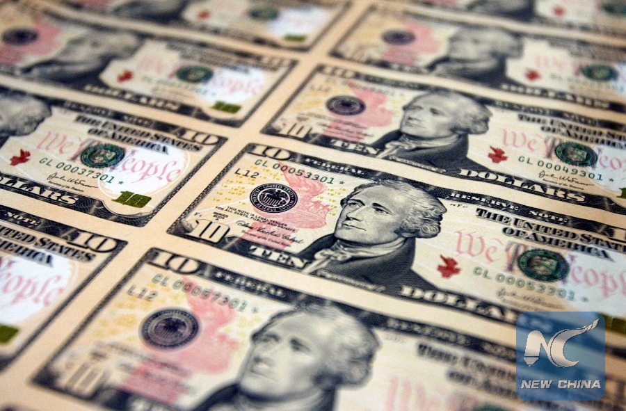 This file photo taken on March 2, 2006 shows the United States 10-dollar bill. With the United States retreating to the stronghold of protectionism and nationalism, concerns about a trade war are rising around the globe. (Xinhua/Lyu Mingxiang)