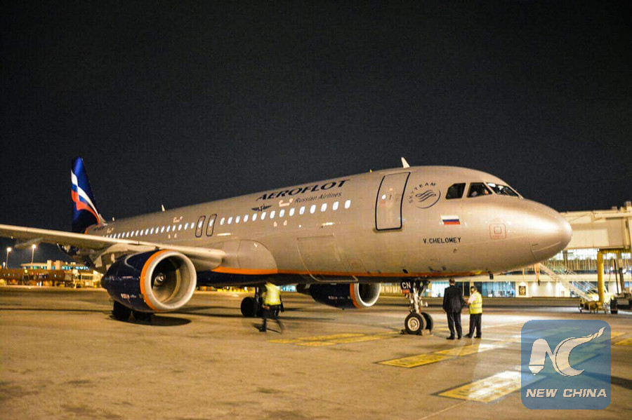 A plane of Russia's Airliner Aeroflot arrives at Cairo International Airport, Egypt, on April 11, 2018. Egypt and Russia resumed their direct flights on April 11, 2018, after two years of suspension following a deadly Russian plane crash over Egypt's Sinai Peninsula in late October 2015. (Xinhua)(psw)