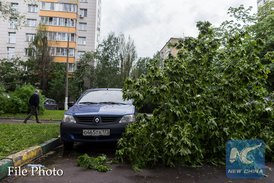 MOSCOW, April 21 (Xinhua) -- At least one person was killed and 12 others injured during a storm in Russia's capital of Moscow on Saturday, Moscow Mayor Sergei Sobyanin said.