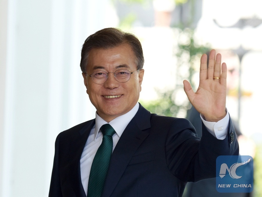 South Korean President Moon Jae-in waves upon his arrival at the White House in Washington D.C., the United States, on June 30, 2017. (Xinhua/Yin Bogu)