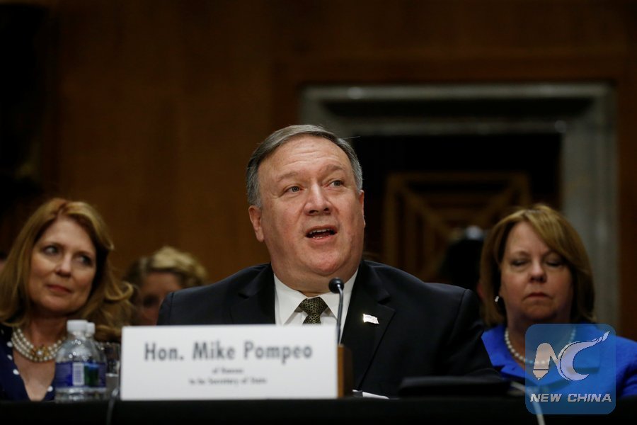 File Photo: CIA Director Mike Pompeo testifies before a Senate Foreign Relations Committee confirmation hearing on Pompeo's nomination to be secretary of state on Capitol Hill in Washington, D.C., U.S., April 12, 2018. (Xinhua/REUTERS)