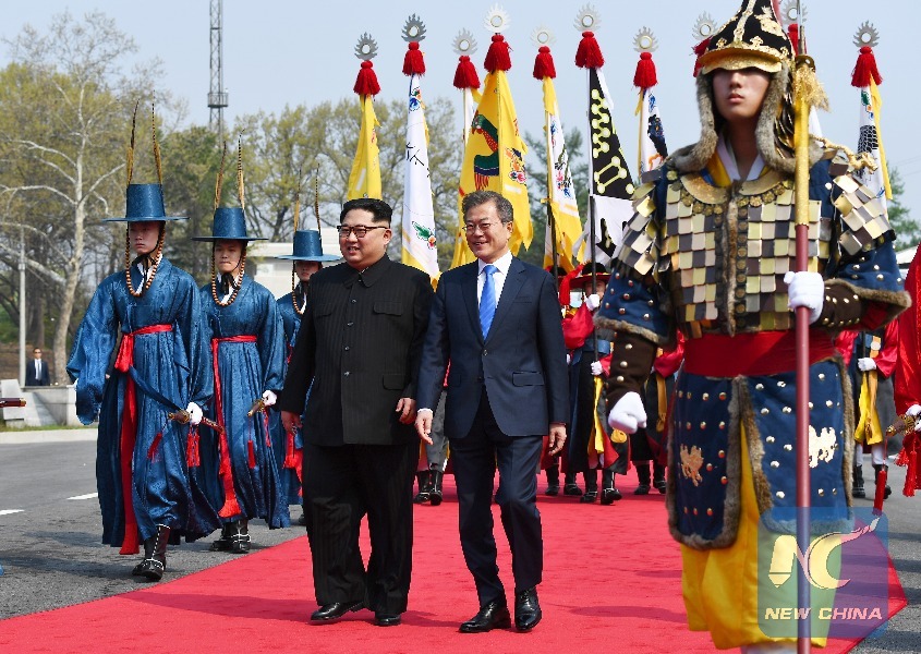 GOYANG, South Korea, April 27 (Xinhua) -- Top leader of the Democratic People's Republic of Korea (DPRK) Kim Jong Un and South Korean President Moon Jae-in met on Friday at the truce village of Panmunjom for a historic summit.