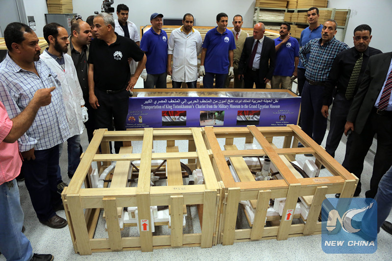CAIRO, May 5 (Xinhua) -- The last military chariot of King Tutankhamun has been transferred to the Grand Egyptian Museum (GEM) on Saturday, Egyptian Minister of Antiquities Khaled Anany said.