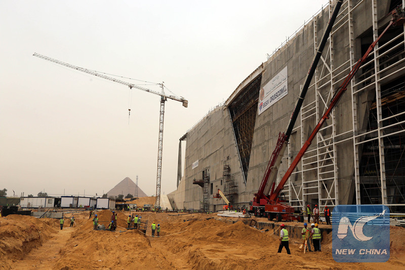 Egyptian builders work at the construction site of Grand Egyptian Museum (GEM) in Giza, Egypt, May 5, 2018. (Xinhua/Ahmed Gomaa)