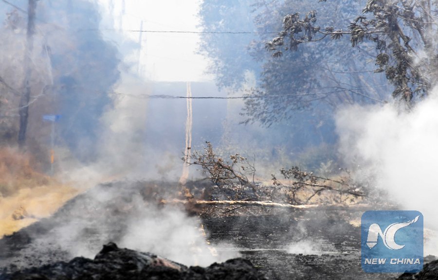 Volcanic debris are seen on a road in Leilani Estate, Hawaii, U.S., May 9, 2018. According to reports of the Hawaii State government, eruptions of the Kilauea Volcano had forced the evacuation of thousands of people. (Xinhua/Tao Xiyi)