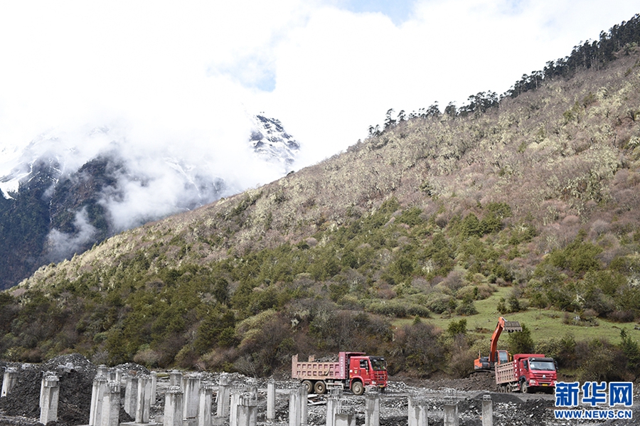 Photo taken on May 9, 2018 shows Yumai Township under construction. Yumai Township is located in Longzi County of Shannan, southwest China's Tibet Autonomous Region. (Xinhuanet/Ma Yimeng)