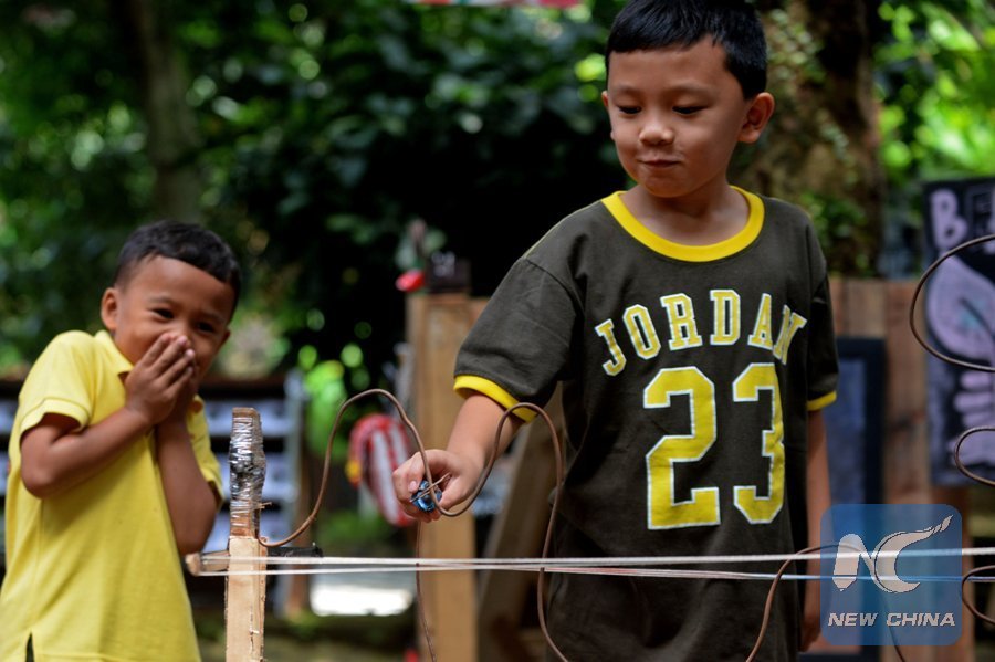 File Photo: A boy plays wire loop games during Outdoor Workshop and Education for Kids at Tanah Tingal ecoforest in South Tangerang, Indonesia, Nov. 18, 2017. (Xinhua/Agung Kuncahya B.)